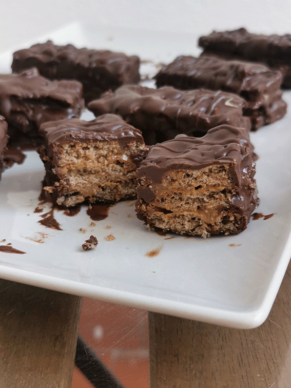 ✔️Colocas una capa de pan wasa, la untas con crema de avellanas y otra capa de pan hasta 3 capas.
