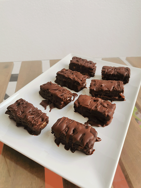 ✔️Cubre de chocolate negro derretido con aceite de coco.