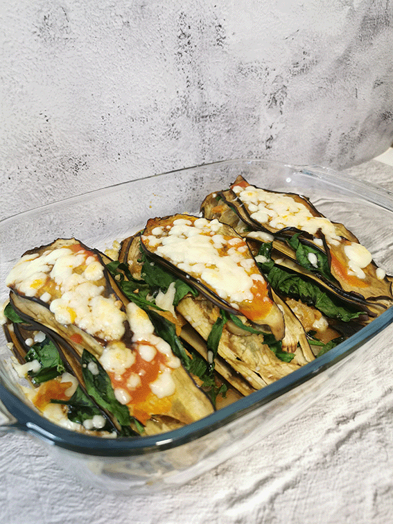 PROCEDIMIENTO: ✔️ Laminamos la berenjena no muy fina con una mandolina o con un pelador. ✔️Les echamos un poco de sal. ✔️Horneamos 10 minutos a 180° ✔️Mientras en una sartén vamos pochando la cebolla con el atún y el tomate. ✔️Echamos un poco de sal y pimienta al gusto. ✔️Añadimos las 3 cucharadas de salsa de tomate y los champis. ✔️Cocinamos unos minutos. ✔️Sacamos las berenejmas y montamos como queramos. Puedes hacer montaditos más pequeños. Yo hice 3. ✔️Colocas una breenejna, la mezcla, queso rallado, unas hojas y otra berenjena ✔️En la última capa pintamos con un poco de salsa de tomate y echamos más queso rallado. ✔️Horneamos 15 minutos a 220° 😋😋 Llena más de lo que parece, está muy bueno. * Puedes hacerlo el día anterior y darle un calentón a la hora de comerlo. 📁 Guárdate la receta para poder prepararla cuando quieras ❤ Si te gusta 🗣 Comenta dudas o para decirme que te encanta 😉