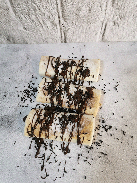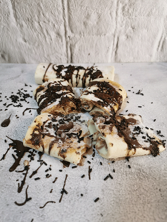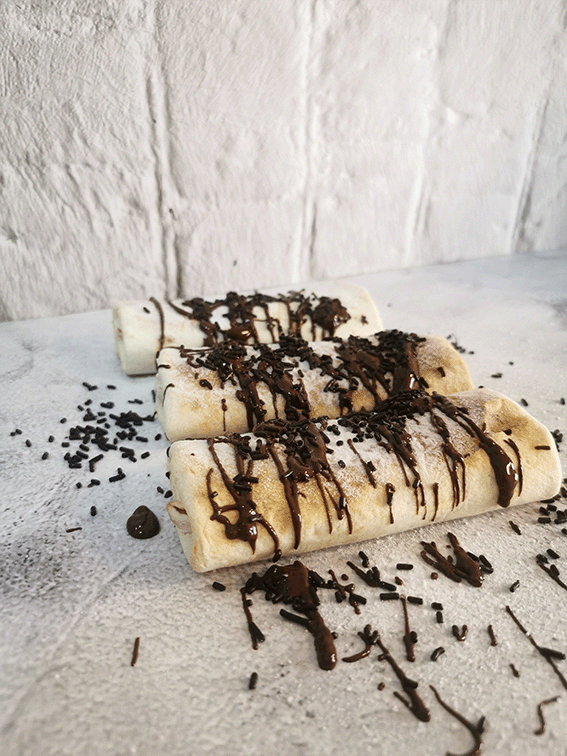 ✔️Coloca una chocolatina en cada extremo de la tortilla.